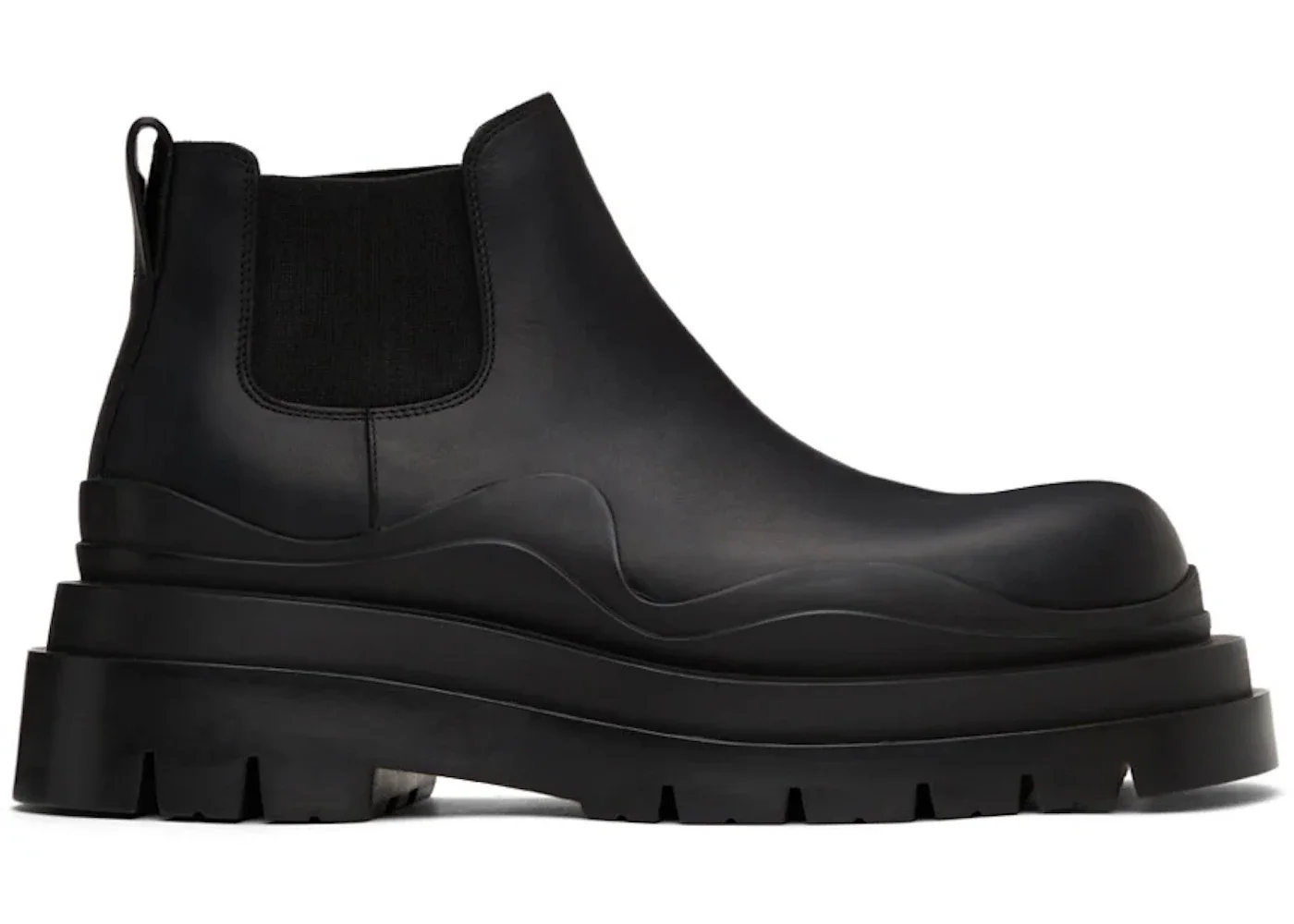 Bottega Veneta Leather Tire Chunky Sole Ankle Chelsea Boot Black