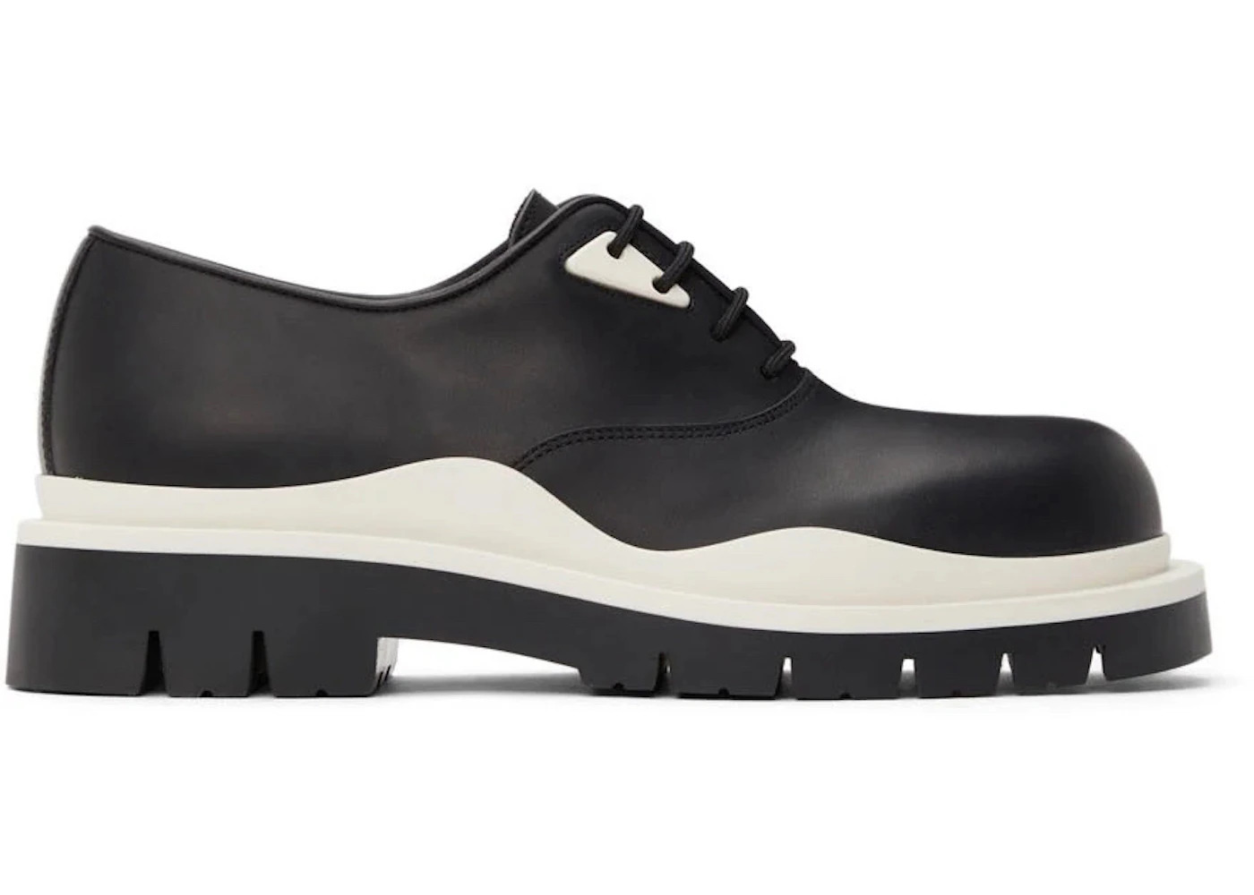 Bottega Veneta Tire Lace Up Leather Shoe Black Ivory