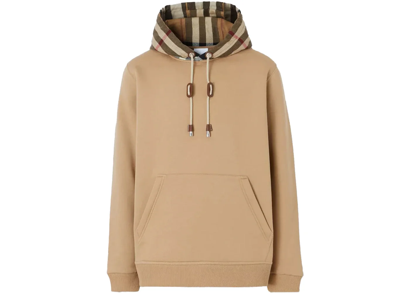 Burberry Check Hood Cotton Hoodie Camel