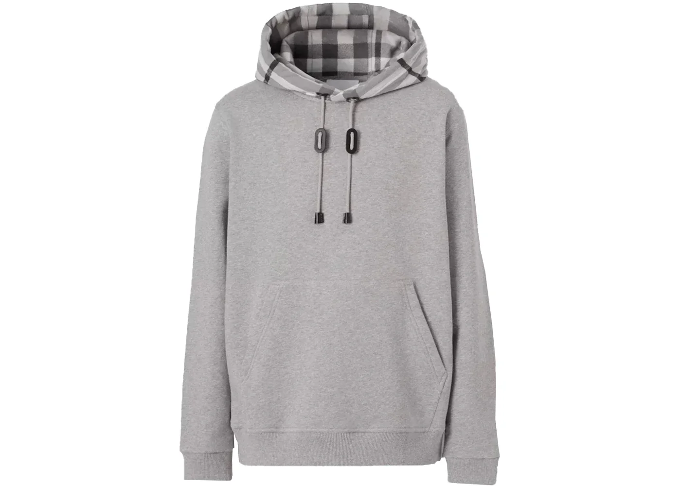 Burberry Check Hood Cotton Hoodie Pale Grey Melange