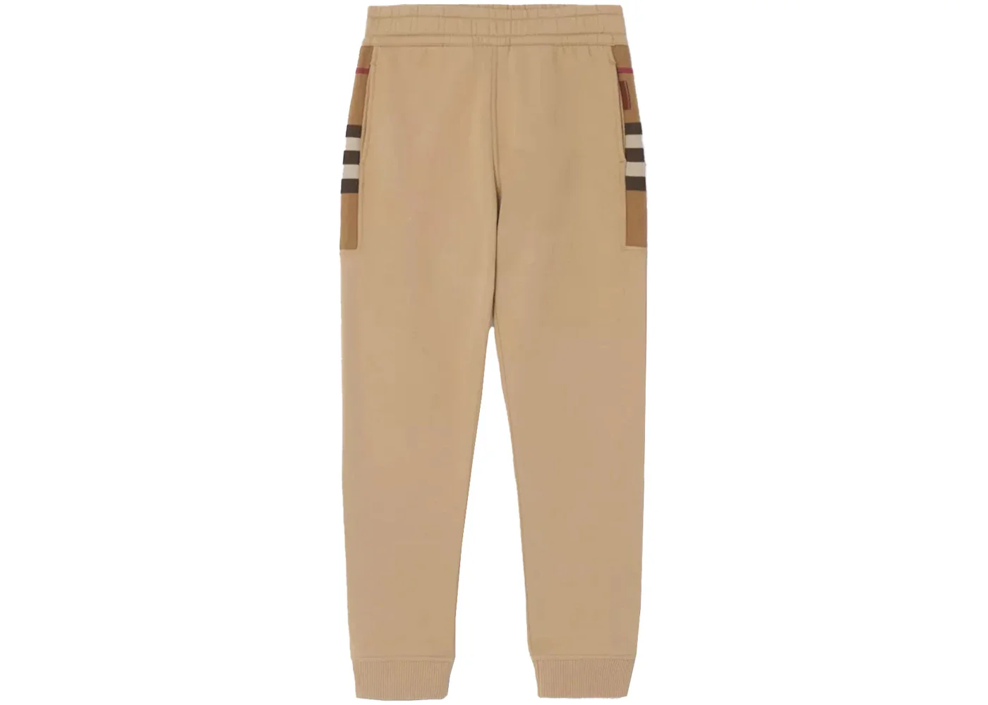 Burberry Check Panel Cotton Blend Jogging Pants Camel