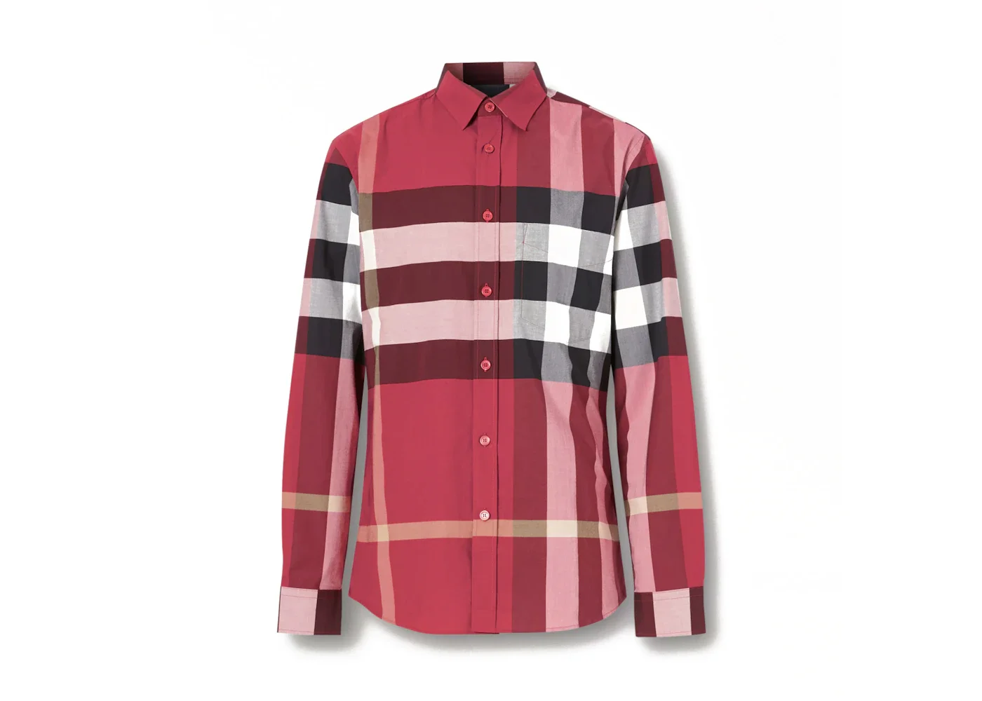 Burberry Check Stretch Cotton Poplin Shirt Parade Red