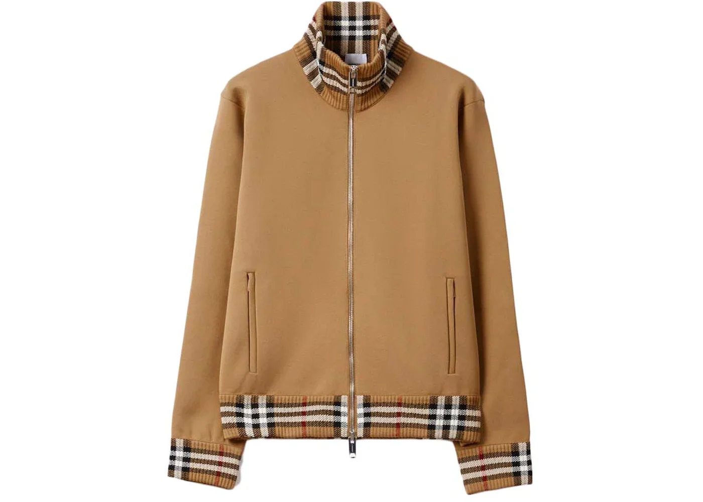 Burberry Check Trim Viscose Blend Track Jacket Camel
