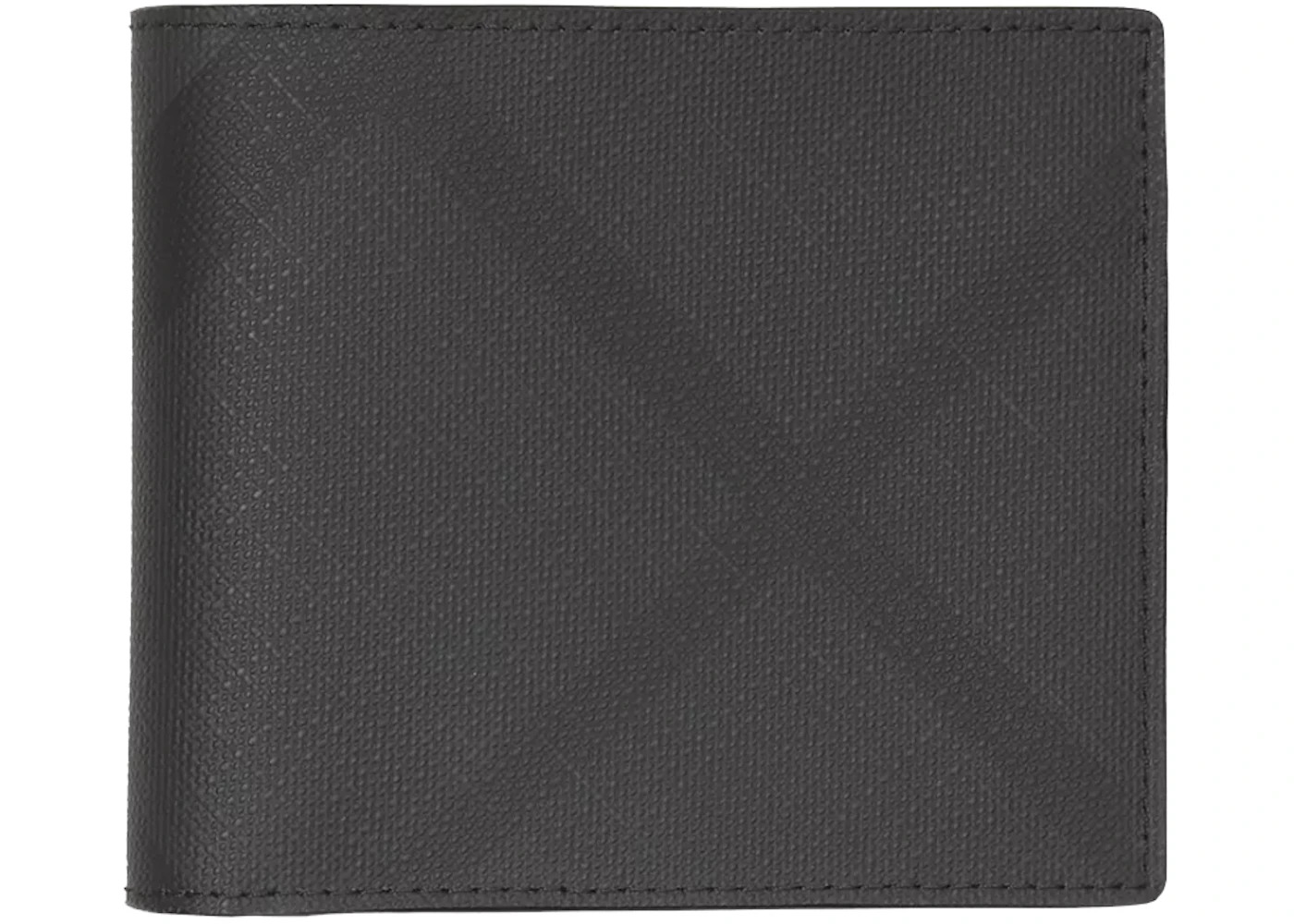 Burberry International Bifold Wallet London Check and Leather (8 Card Slot) Dark Charcoal