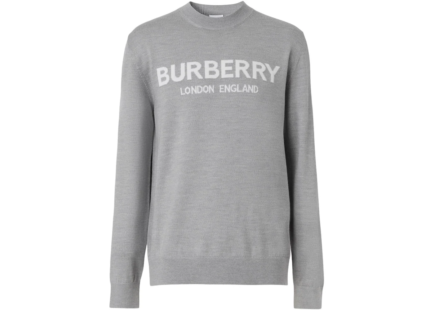 Burberry Logo Intarsia Wool Blend Sweater Grey Melange/White