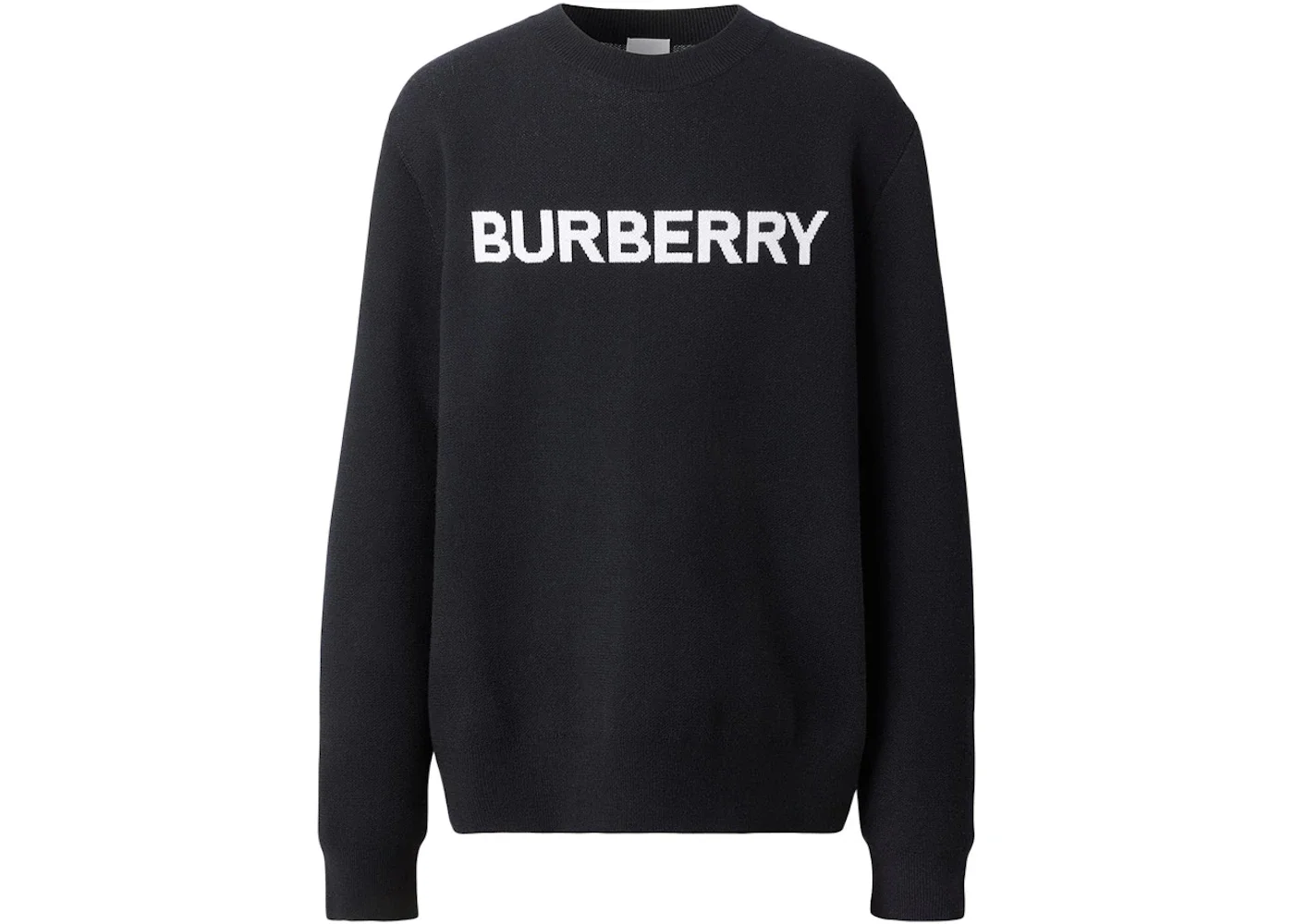 Burberry Logo Intarsia Wool Cotton Sweater Coal Blue