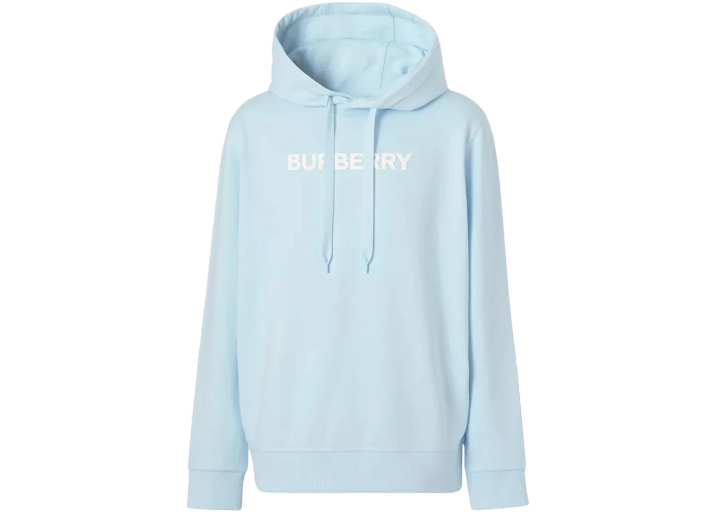 Burberry Logo Print Cotton Hoodie Pale Blue