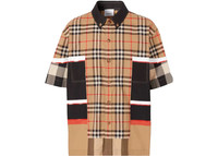 Burberry Short-Sleeve Patchwork Check Cotton Shirt Archive Beige