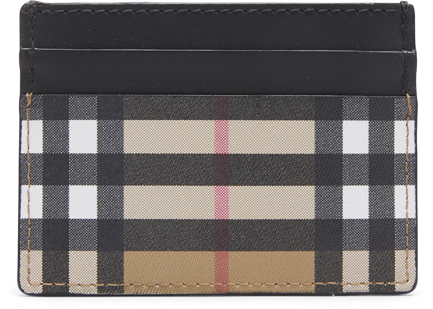 Burberry Vintage Check and Leather Card Case 4 Slot Black