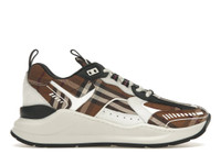 Burberry Vintage Check Cotton and Leather Sneakers Dark Birch Brown White