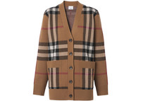 Burberry Womens Checked Wool Cashmere Blend Cardigan Brown