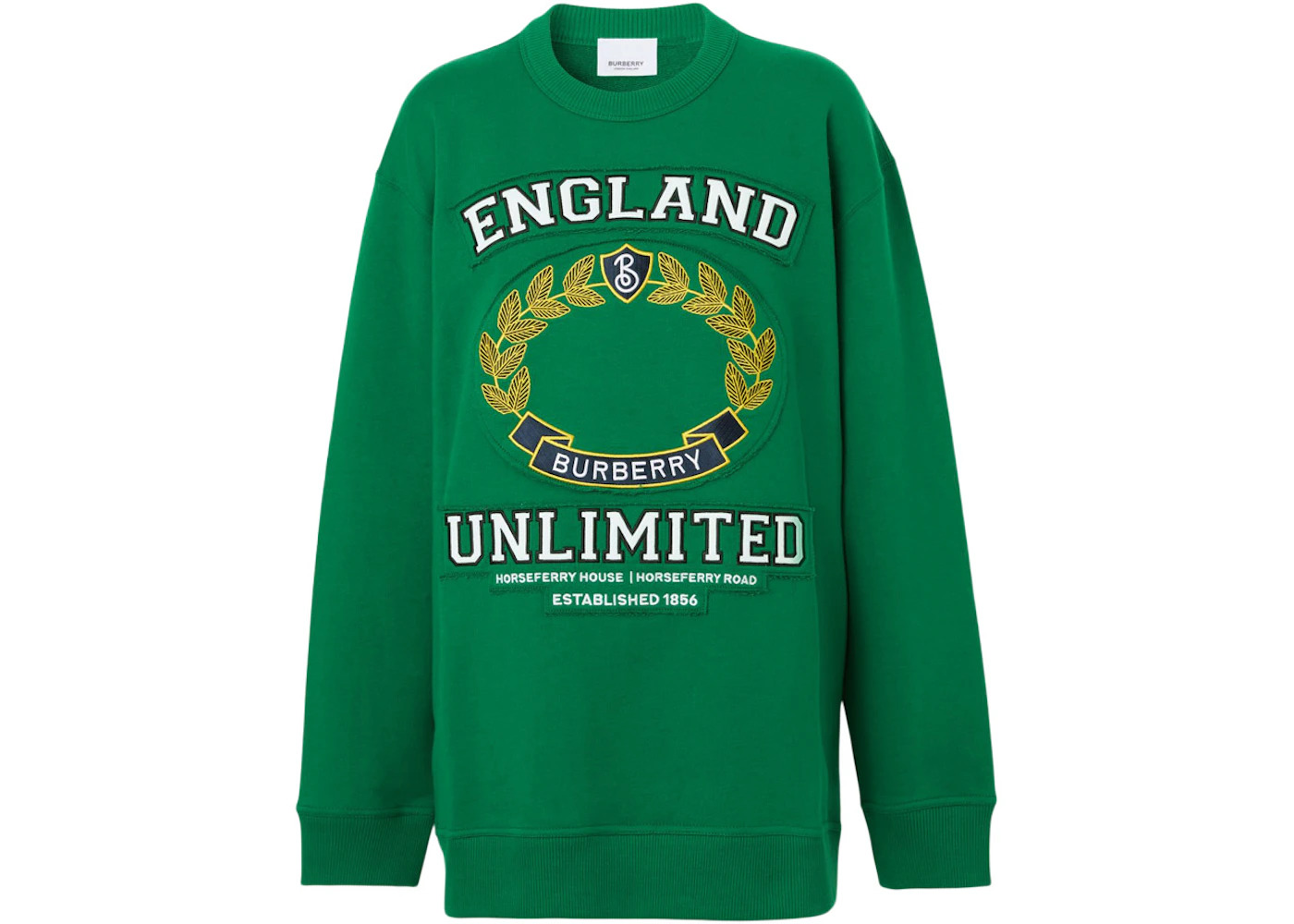 Burberry Women's College Graphic Cotton Oversized Sweatshirt Deep Pine Green/Multi