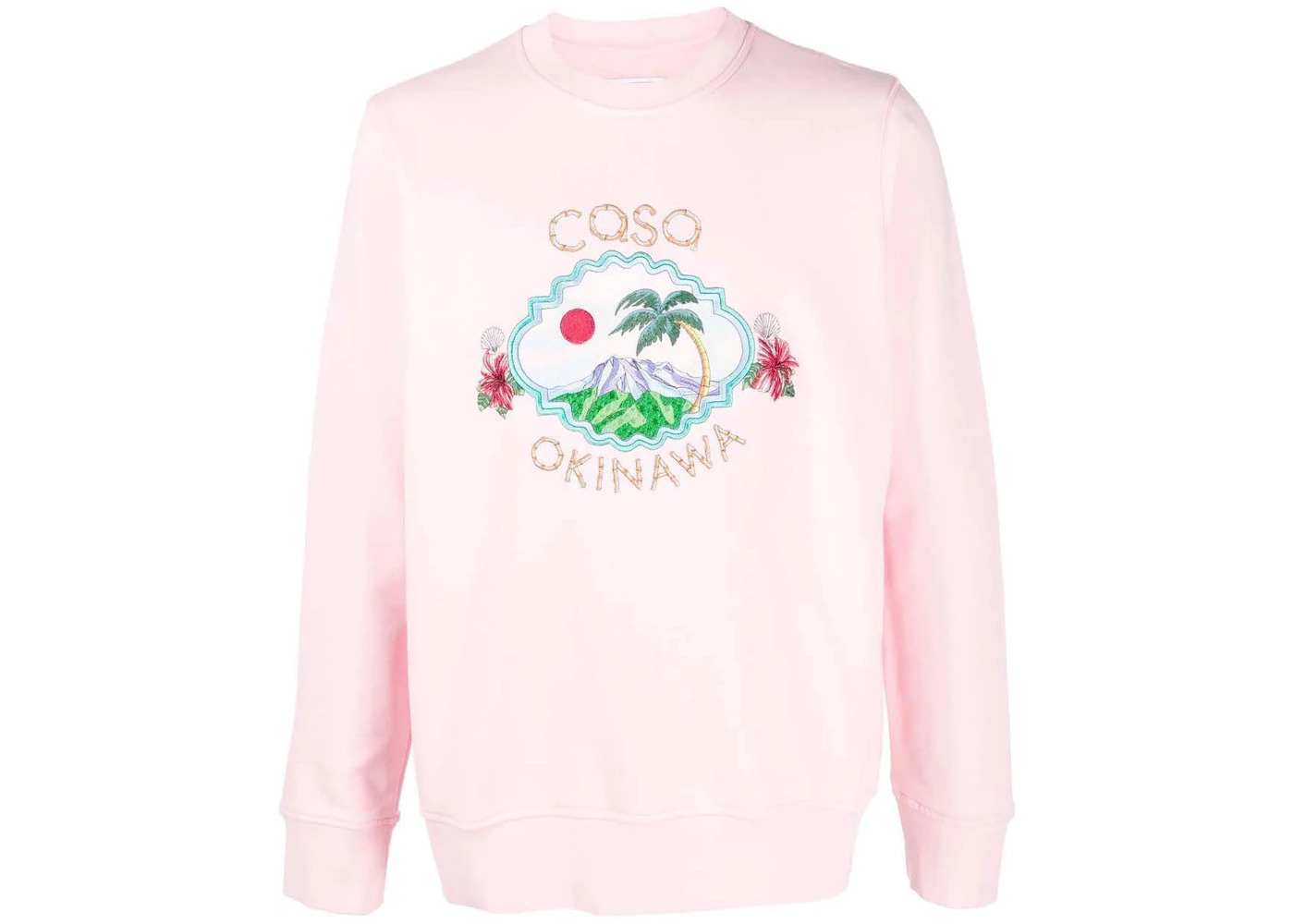 This Casablanca Casa Okinawa Embroidered Crewneck Sweatshirt (Pink) pays homage to Okinawa with the island’s name and graphic appearing on the sweat. The Casablanca Casa Okinawa Embroidered Crewneck Sweatshirt (Pink) is made from 100% cotton and cut to a classic fit. The long-sleeved sweatshirt is available in pink and features a graphic of the Japanese island embroidered on the chest. The pink sweatshirt is made in Portugal and features a rib-knit crewneck collar, ribbed cuffs, and ribbed hem. The Casablanca Casa Okinawa Embroidered Crewneck Sweatshirt (Pink) debuted as part of the Summer Spring 2022 season and retailed for $671. - Season SS22 - Color Pink - Style MS22JTP001 - Retail Price 671 - Featured false