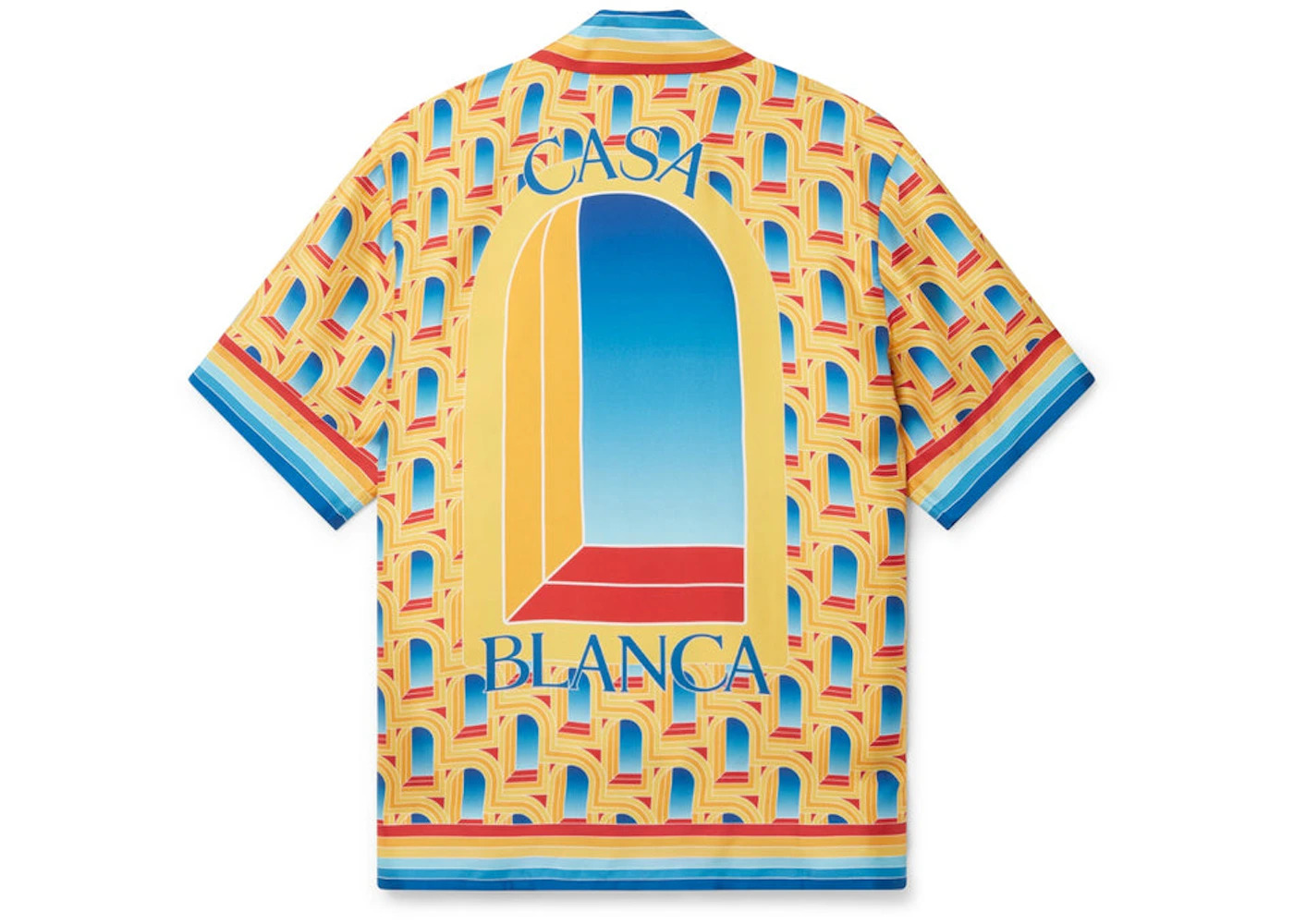 Casablanca L'Arche De Jour Cuban Collar Silk Shirt Yellow/Orange/Blue
