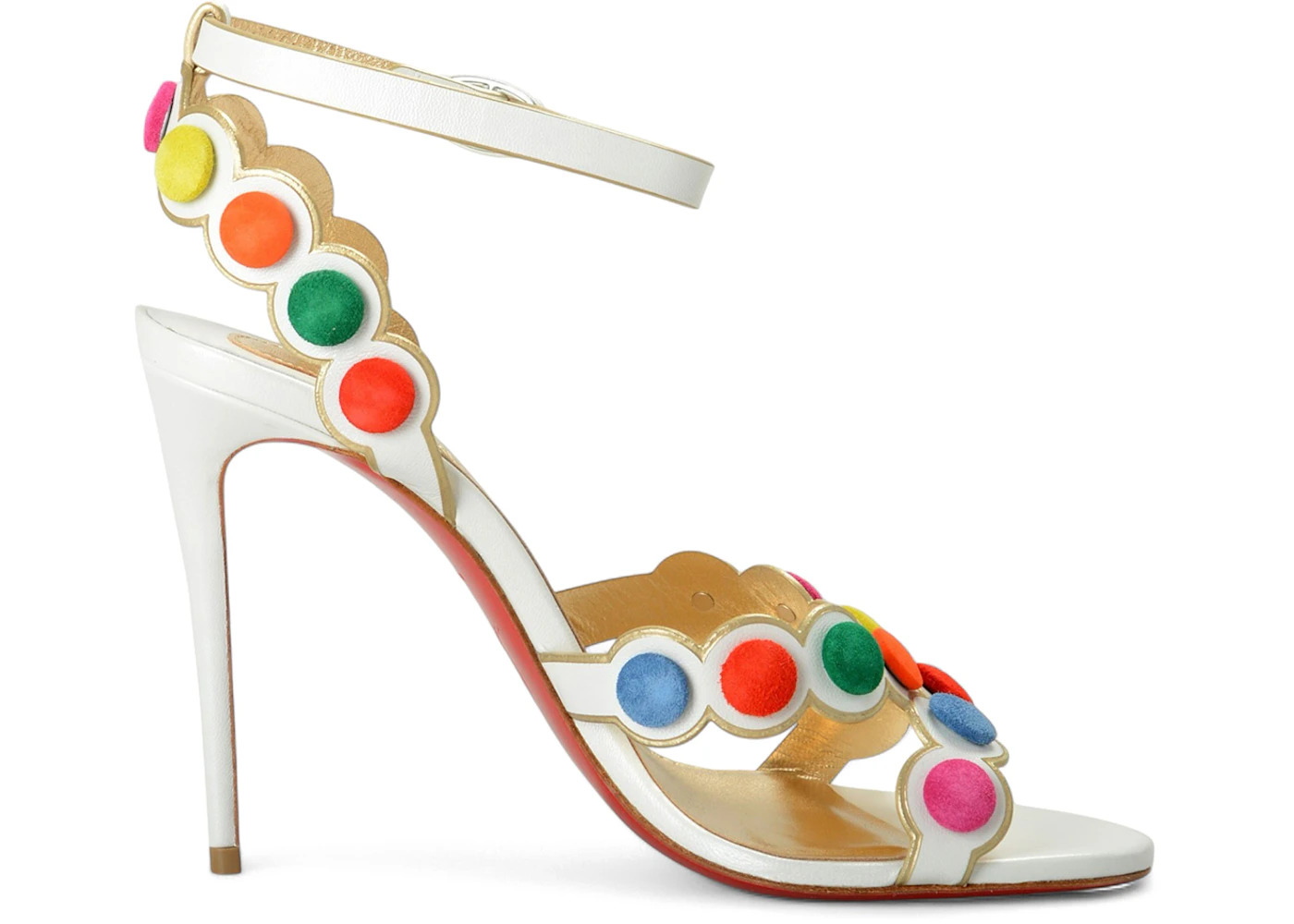 Christian Louboutin Smartissima 100 White Leather Strappy Sandal Multi Mekong (Women's)