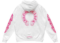 Chrome Hearts Pink Horseshoe Floral Sleeve Pullover Hoodie White