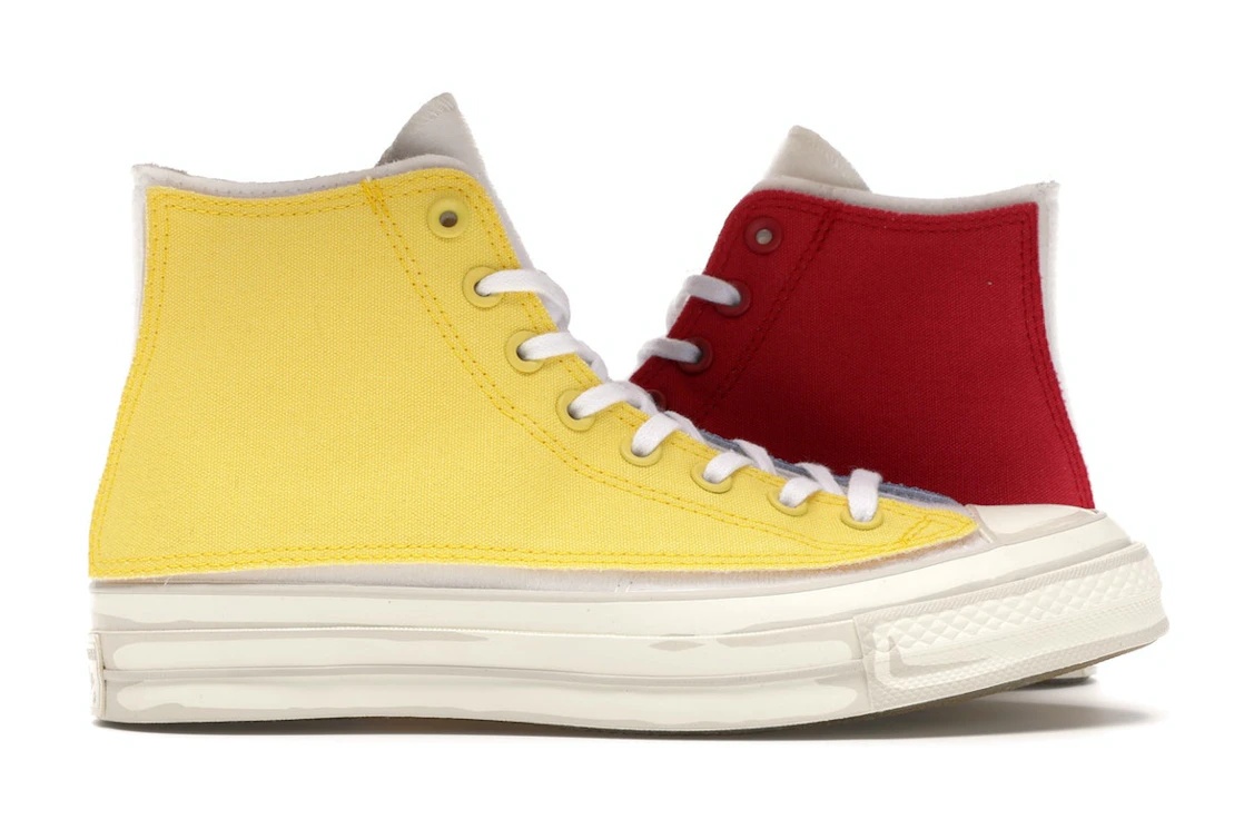 The Converse Chuck Taylor All-Star 70 Hi Joshua Vides White is an addition to the Chuck Taylor line of sneakers designed in collaboration with artist Joshua Vides. The White Hi Joshua Vides Converse Chuck Taylor All-Star 70 features a pair of contrasting shoes. One shoe boasts a yellow, egret, and blue colorway while the other shoe features a red, egret, and green colorway. The shoe also has a leather patch on the heel with the Converse logo. The Converse Chuck Taylor All-Star 70 Hi Joshua Vides White was released on July 20, 2019 at a retail price of $110. - Style 166559C - Colorway White/Egret-White - Retail Price 110 - Release Date 2019-07-20 - Featured false