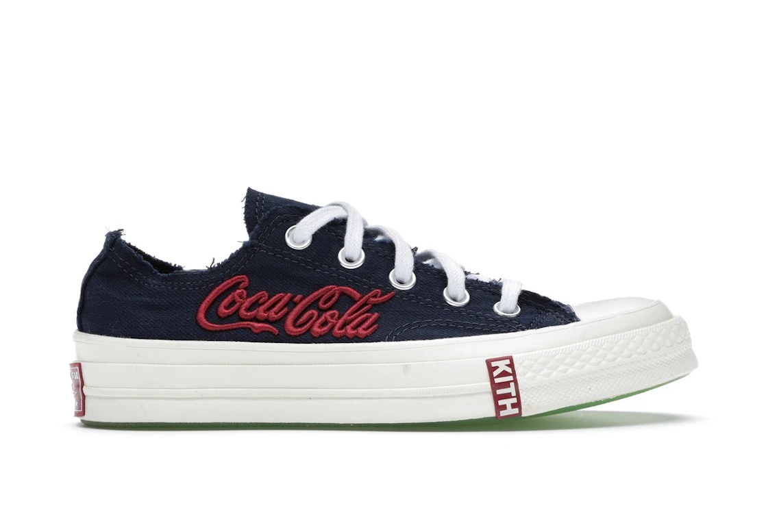 The Converse Chuck Taylor All Star 70s Ox Kith x Coca Cola Blue is a limited edition collaboration between two iconic brands. The shoe features a blue canvas upper with Coca Cola branding on the tongue and heel, as well as Kith branding on the insole. The classic Chuck Taylor silhouette is updated with a vintage-inspired off-white midsole and toe cap, as well as a gum outsole for added traction. Crafted with premium materials, the Converse Chuck Taylor All Star 70s Ox Kith x Coca Cola Blue is both stylish and durable. The canvas upper is breathable and comfortable, while the rubber outsole provides excellent grip and traction. The shoe also features a cushioned footbed for added comfort. Released on August 15, 2020, the Converse Chuck Taylor All Star 70s Ox Kith x Coca Cola Blue retails for $140. This limited edition collaboration is a must-have for fans of both Converse and Coca Cola, and is sure to turn heads wherever you go. Something we love about Converse Chuck Taylor All Star 70s Ox Kith x Coca Cola Blue is the unique collaboration between two iconic brands, resulting in a stylish and eye-catching shoe. Our experts think the standout feature of the Converse Chuck Taylor All Star 70s Ox Kith x Coca Cola Blue is the vintage-inspired off-white midsole and toe cap, which adds a touch of retro flair to the classic Chuck Taylor silhouette. Overall, we love the premium materials, comfortable fit, and attention to detail that make this shoe a standout addition to any sneaker collection. - Style 169836C - Colorway Navy/Red-White - Retail Price 140 - Release Date 2020-08-15 - Featured false