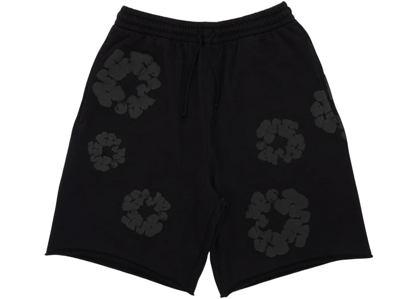 Denim Tears Faded Mono Cotton Wreath Sweatshorts Black