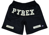 The Denim Tears Pyrex Tears Shorts Black is a pair of basketball-styled shorts released by the clothing brand Denim Tears in a black colorway. Constructed mainly out of a cotton blend, this knee-length product has an elastic waistband and well-sewn hems. For breathability, this pair of shorts feature perforations all over. Branding-wise, it boasts a PYREX imprint on its front, just below its waist, a pyrex logo above its right leg opening, as well as a tears and Champion logo above its left leg opening. The Denim Tears Pyrex Tears Shorts Black was released on 6th September 2022. At the time, it retailed at $100. - Season FW22 - Color Black - Release Date 2022-09-06 - Retail Price 100 - Featured false