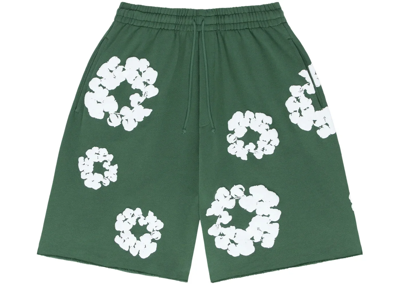 The Denim Tears The Cotton Wreath Shorts Green are a summery twist on the classic denim shorts, with a vibrant green color and delicate cotton wreath details that add a touch of whimsy to your warm-weather wardrobe. The Cotton Wreath Green Shorts by Denim Tears feature a unique blend of 98% cotton and 2% spandex, offering comfort and flexibility. The wreath-inspired design on the left leg pays homage to traditional craftsmanship. The delicate, hand-stitched threads create a sense of nostalgia and craftsmanship. These shorts have a relaxed fit and a 12-inch inseam, with a button fly and side pockets for functionality. The muted green colorway adds a subtle touch to this distinctive piece. The team of experts is impressed with the cotton wreath embroidery on the Denim Tears The Cotton Wreath Shorts Green. The thoughtful attention to detail in these shorts is a hallmark of Denim Tears' design. Released on September 26, 2023, these shorts debuted with a retail price of $175. - Season FW23 - Color Green - Release Date 2023-09-26 - Retail Price 175 - Featured false - Uploaded By LL