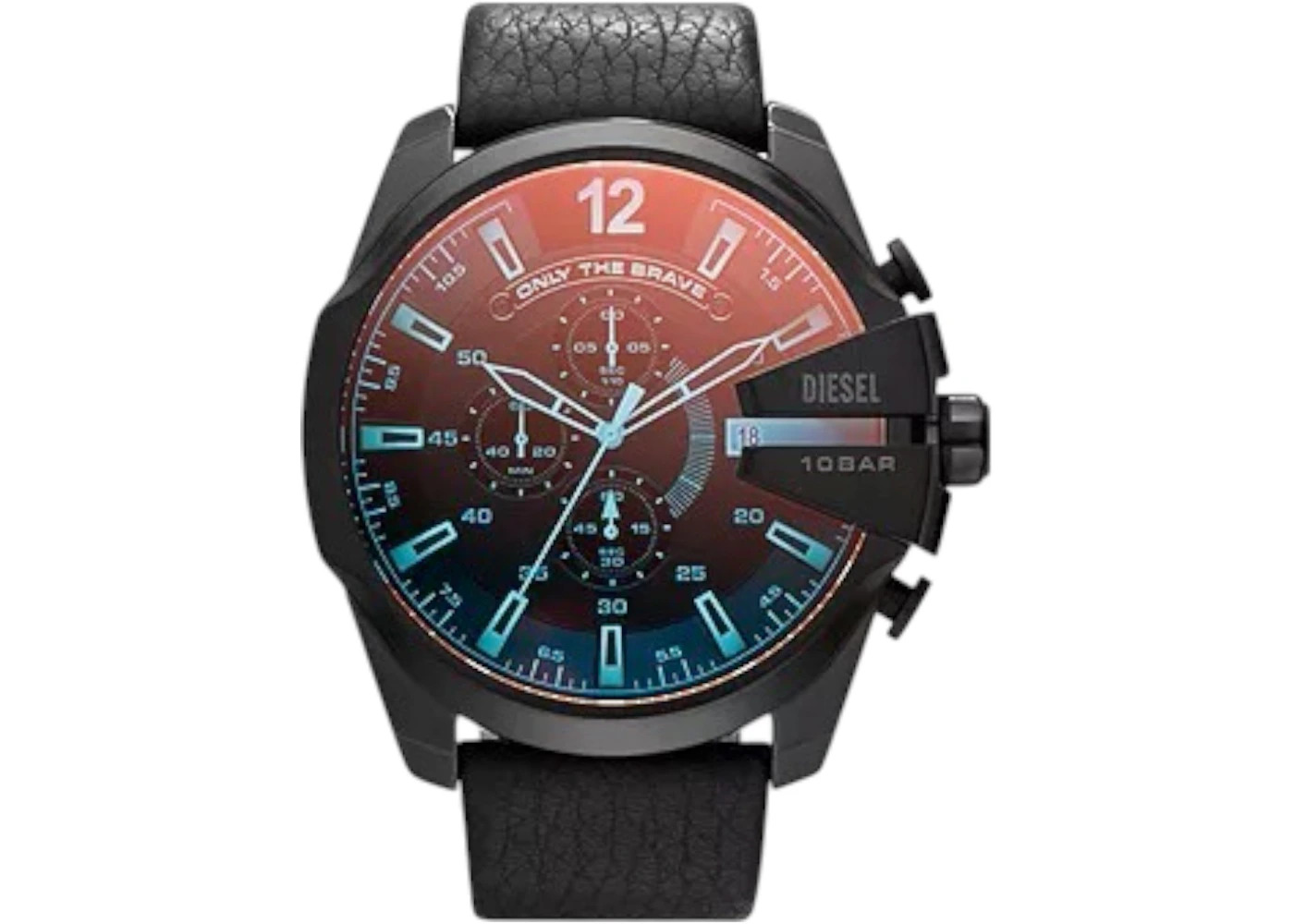 - Reference Number DZ4323 - Case Size 51mm - Case Material Stainless Steel - Band Leather - Movement Quartz - Dial Black - Retail Price 350 - Base Model Mega Chief - Featured false - Requester Nathan P - Styles Casual - Uploaded By VL