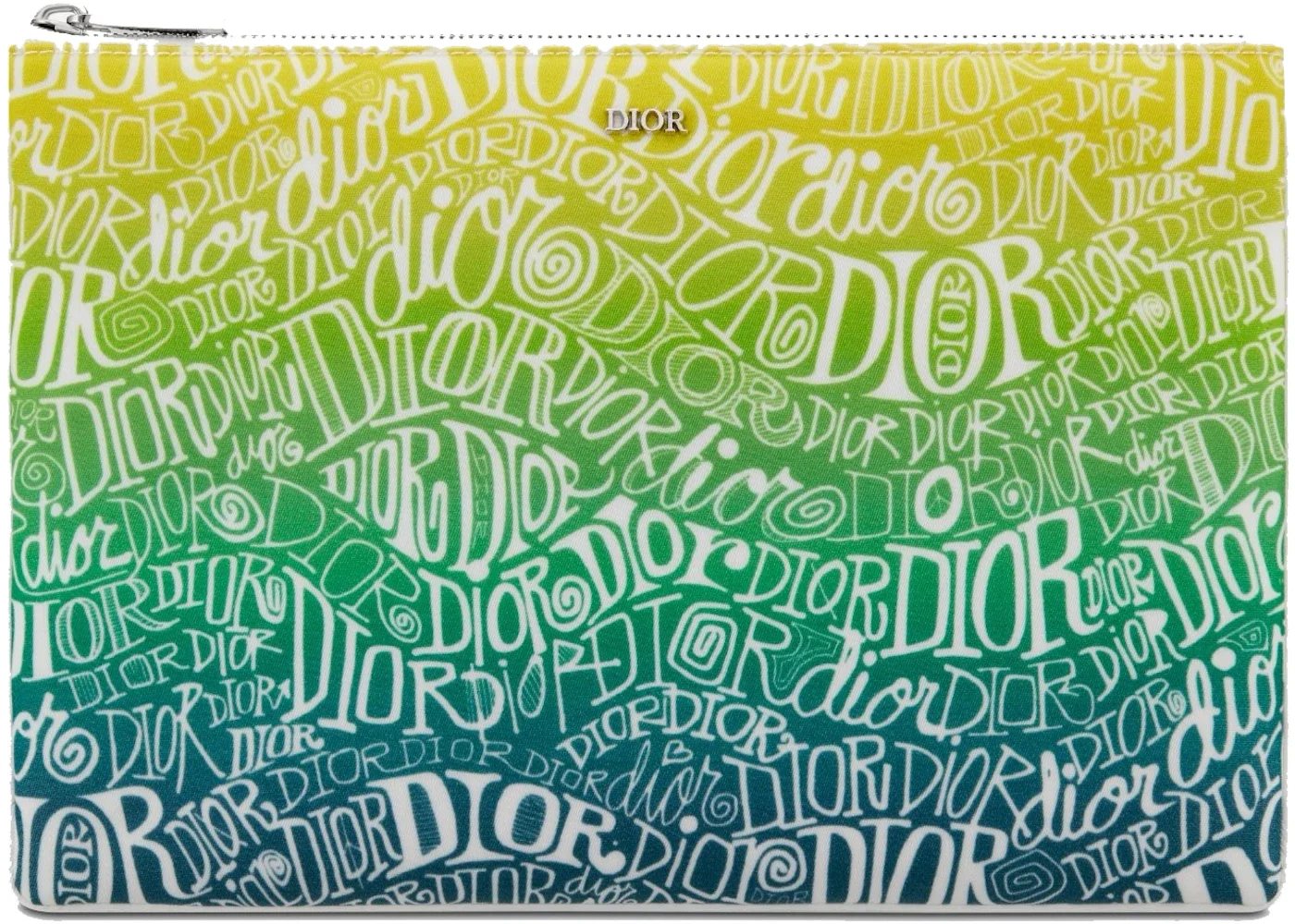 The highly anticipated Dior Stussy Fall 2020 collaboration was released in June 2020. Kim Jones brought streetwear industry veteran Shawn Stussy out of retirement to bring his distinctive penmanship and surfer vibe to the House of Christian Dior. The DIOR AND SHAWN multicolor nylon pouch is a replica of the pouch sent to the invitees of the December 2019 Miami runway show where the Pre-Fall 2020 collection made its debut. The print was designed by Kim Jones in collaboration with Shawn Stussy and features 'Dior' written in multiple stylized font types. The multicolor nylon pouch features a palladium-finish top zip closure, is Made in Italy, and measure 25 cm x 17 cm. The Dior Reference Number for the DIOR AND SHAWN multicolor nylon pouch is 2SPCA224IFL_H05E.Please Note: This item comes with a dust bag, the box is not required. - Material Nylon - Retail Price 420 - Color Multicolor - Hardware Palladium-finish - Style 2SPCA224IFL_H05E - Season FW20 - Base Model Pouch - Base Model Variety And Shawn - Color Generic Green - Exterior Variant Nylon - Featured false - Height 6.6 - Interior Color Black Textile Interior Lining - Styles Pouch - Width 9.8