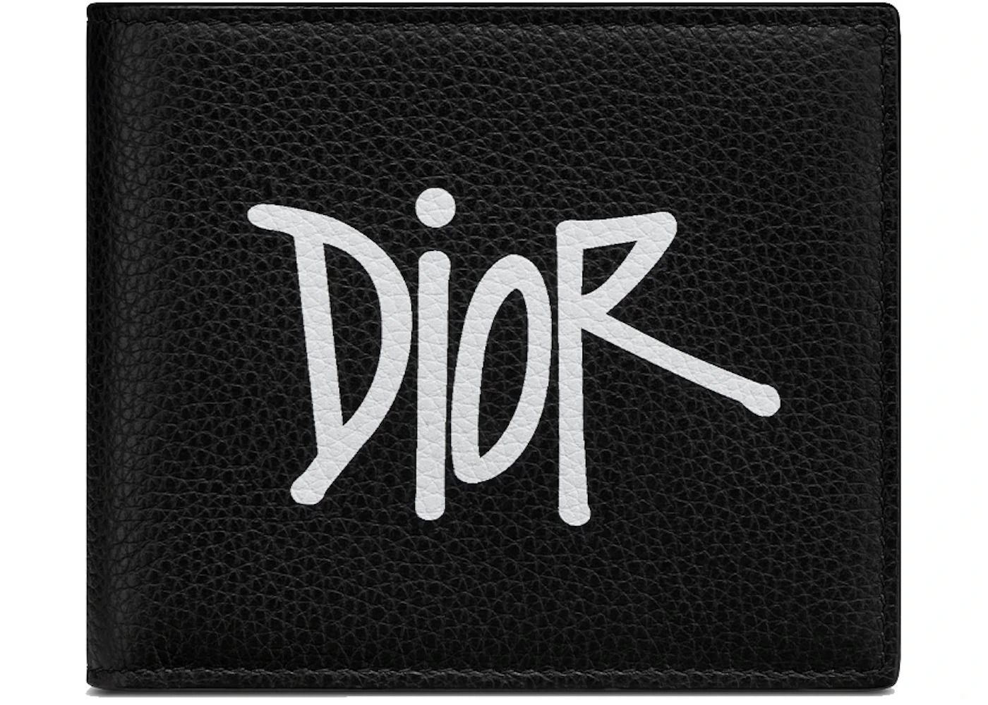 The highly anticipated Dior Stussy Fall 2020 collaboration was released in June 2020. Kim Jones brought streetwear industry veteran Shawn Stussy out of retirement to bring his distinctive penmanship and surfer vibe to the House of Christian Dior. The DIOR AND SHAWN Bifold Wallet (8 Card Slot), Black, is crafted in grained calfskin with a white printed DIOR logo in Shawn Stussy's unique font styling in collaboration with Kim Jones. The Dior wallet's interior is lined in smooth leather and features a bill slot, two flat compartments, and eight card slots. The DIOR AND SHAWN Bifold Wallet (8 Card Slot), Black, is Made in Italy and measures 11.5 cm x 9.5 cm. The Dior Reference number is 2PUBH027YZS_H10E.Please Note: Dust bag and box are not required for this accessory. - Material Grained Calfskin - Retail Price 470 - Color Black - Style 2PUBH027YZS_H10E - Season FW20 - Base Model Wallet - Base Model Variety And Shawn - Color Generic Black - Featured false - Height 3.7 - Interior Color Black Grained Calfskin Interior Lining - Styles Wallet - Width 4.5