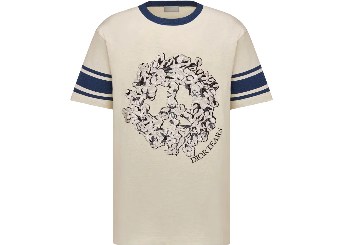 Part of the DIOR TEARS collaboration, the T-shirt showcases the Peace Sign motif designed in delicate cotton flowers and enhanced by the embroidered Dior Tears signature. Crafted in white slub cotton jersey, it features stripes on the sleeve edges and a contrasting crewneck. The relax-fit T-shirt will pair effortlessly with a favorite pair of jeans or Bermuda shorts. - Season SS23 - Color White - Release Date 2023-07-12 - Style 393J696F0849_C088 - Retail Price 1650 - Featured false - Uploaded By LL