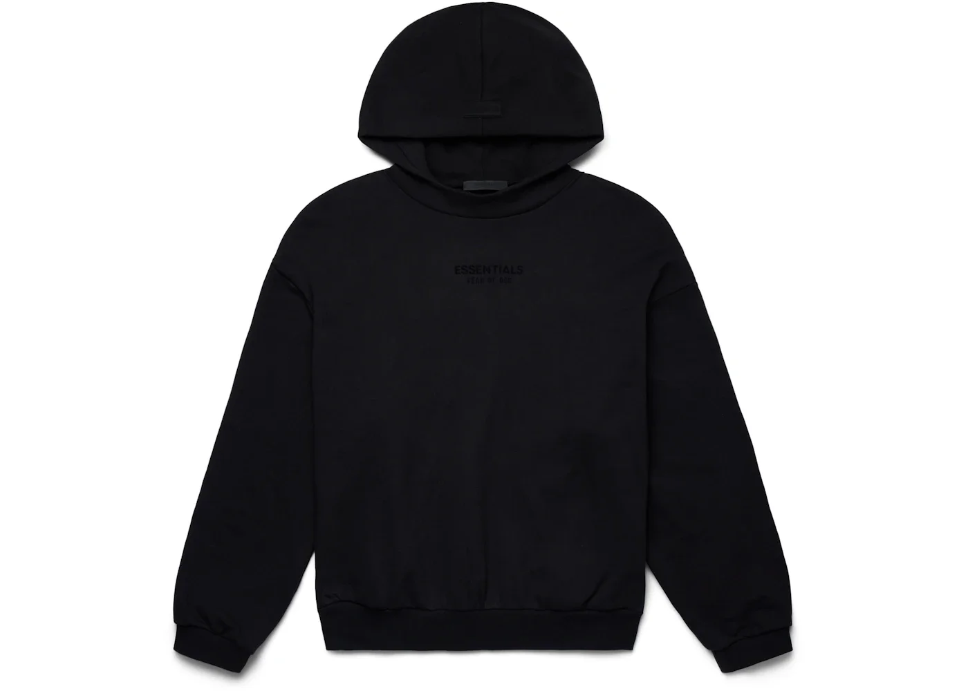 The Fear of God Essentials hoodie provides volume in the body and sleeves with the intent of creating a soft, round, cropped silhouette. A mock neckline and side seam pockets to provide functionality. The Fear of God Essentials Fear of God logo is sized subtly at the center front in a rubberized soft-touch applique, and a Fear of God rubberized label is on the hood. - Season FW23 - Color Jet Black - Release Date 2023-10-18 - Style 192BT232050F - Retail Price 100 - Featured false - Uploaded By LL