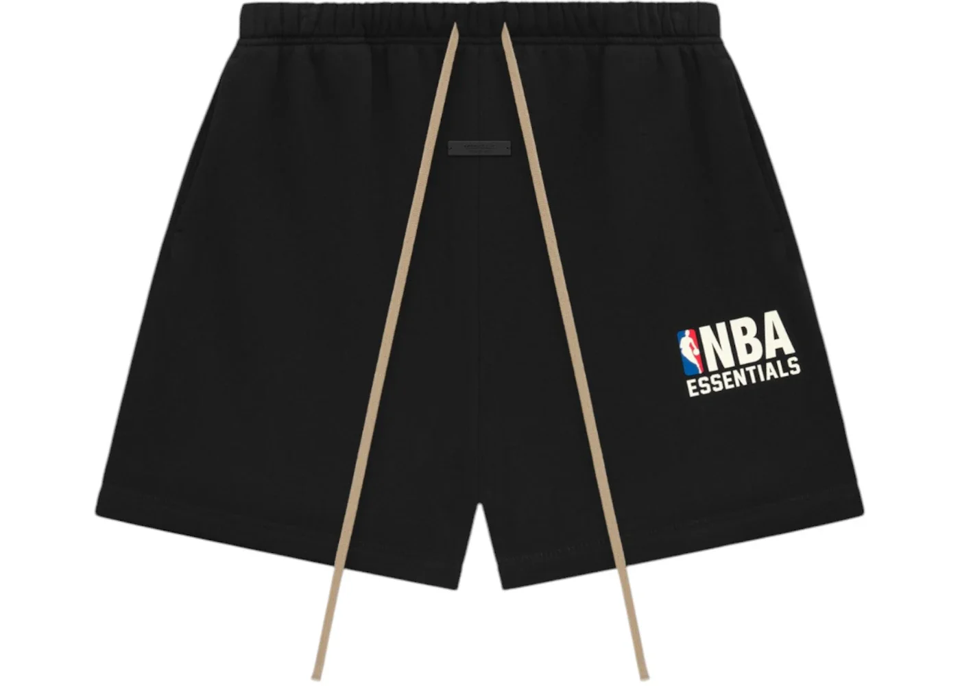 The Fear of God Essentials NBA Sweatshorts Black sits just above the knee in heavyweight fleece, with a relaxed cut. Black Essentials NBA Sweatshorts by Fear of God use a high percentage of cotton and polyester blend at 380 GSM for structure and warmth. There's an elastic waistband with an interior drawcord to keep the fit, and side pockets. Against the black backdrop, there's an embroidered NBA logo on the left leg, above an Essentials label. The deep side pockets hold small items, and the dropped crotch makes movement a little easier. Fear of God launched in 2013 under designer Jerry Lorenzo and expanded into sports collaborations by 2024. Here at StockX, something we love about the Fear of God Essentials NBA Sweatshorts Black is the gusseted inseam that improves leg mobility. Another favorite is the reinforced pocket linings that resist wear. The pair retailed at $100 when they were released on November 20, 2024. - Season FW24 - Color Black - Release Date 2024-11-20 - Retail Price 100 - Featured false - Requester Kelsey K - Uploaded By LL