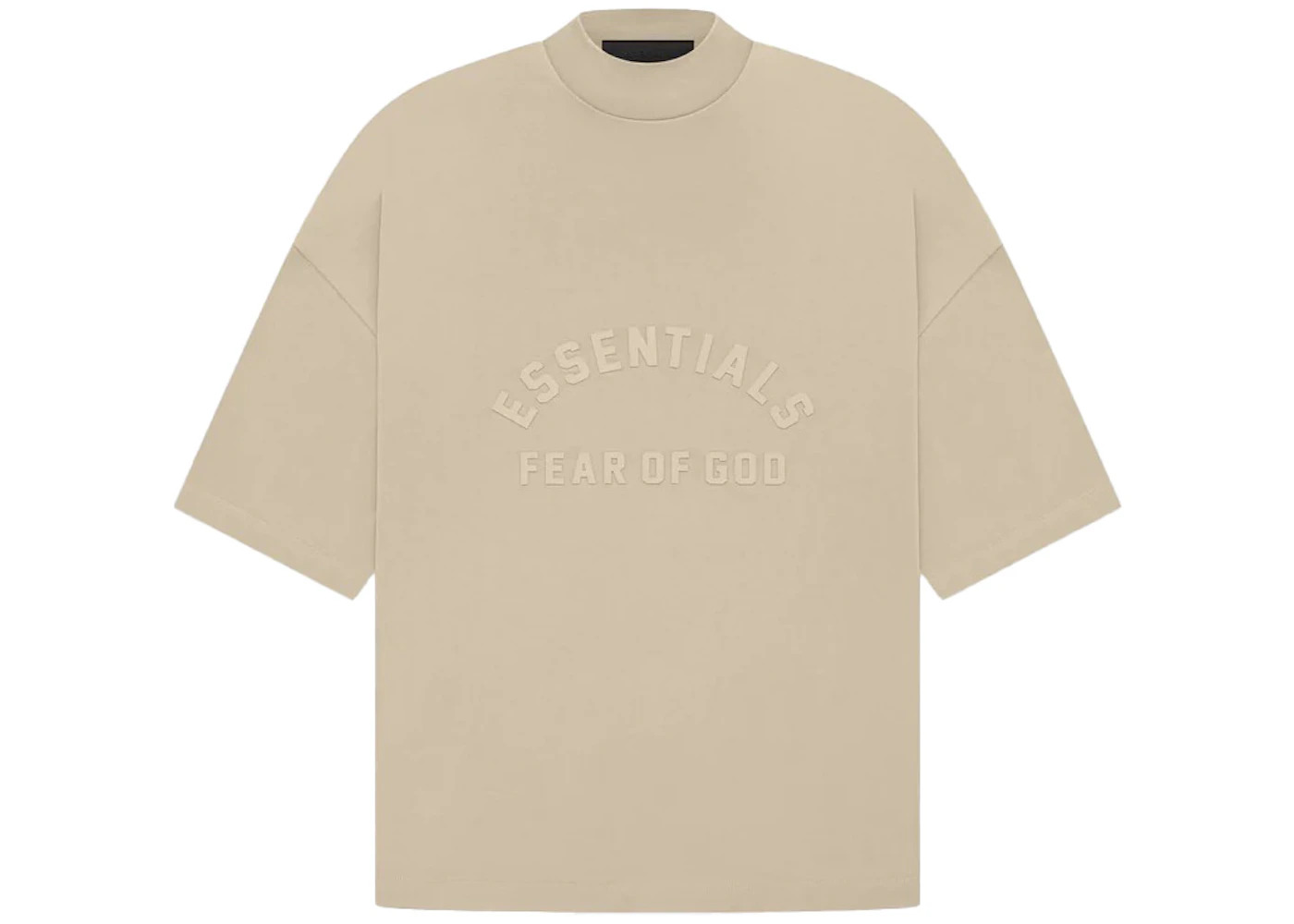 The Fear of God Essentials tee shirt has been redesigned with increased volume in the body and sleeves, providing additional drape and comfort. A revised rib-knit collar sits higher on the neckline, adding structured formality. The curved Essentials Fear of God logo is vintage-inspired but updated in a rubberized soft-touch applique. A new Fear of God rubberized label is at the back collar. - Season SS23 - Color Dusty Beige - Release Date 2023-07-07 - Retail Price 45 - Featured false - Uploaded By LL