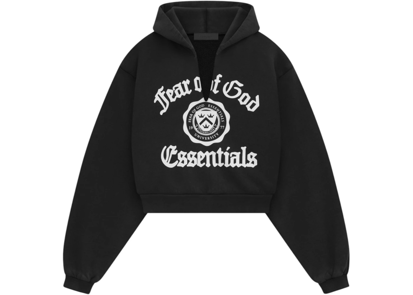 Fear of God Essentials Women's Heavy Fleece Cropped V-Neck Hoodie Black