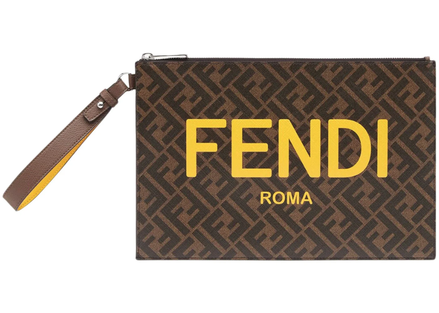 Fendi Flat Pouch FF Monogram Brown/Yellow