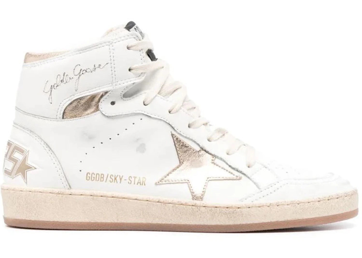 Sky-Star in white nappa leather with gold metallic leather star and heel tab