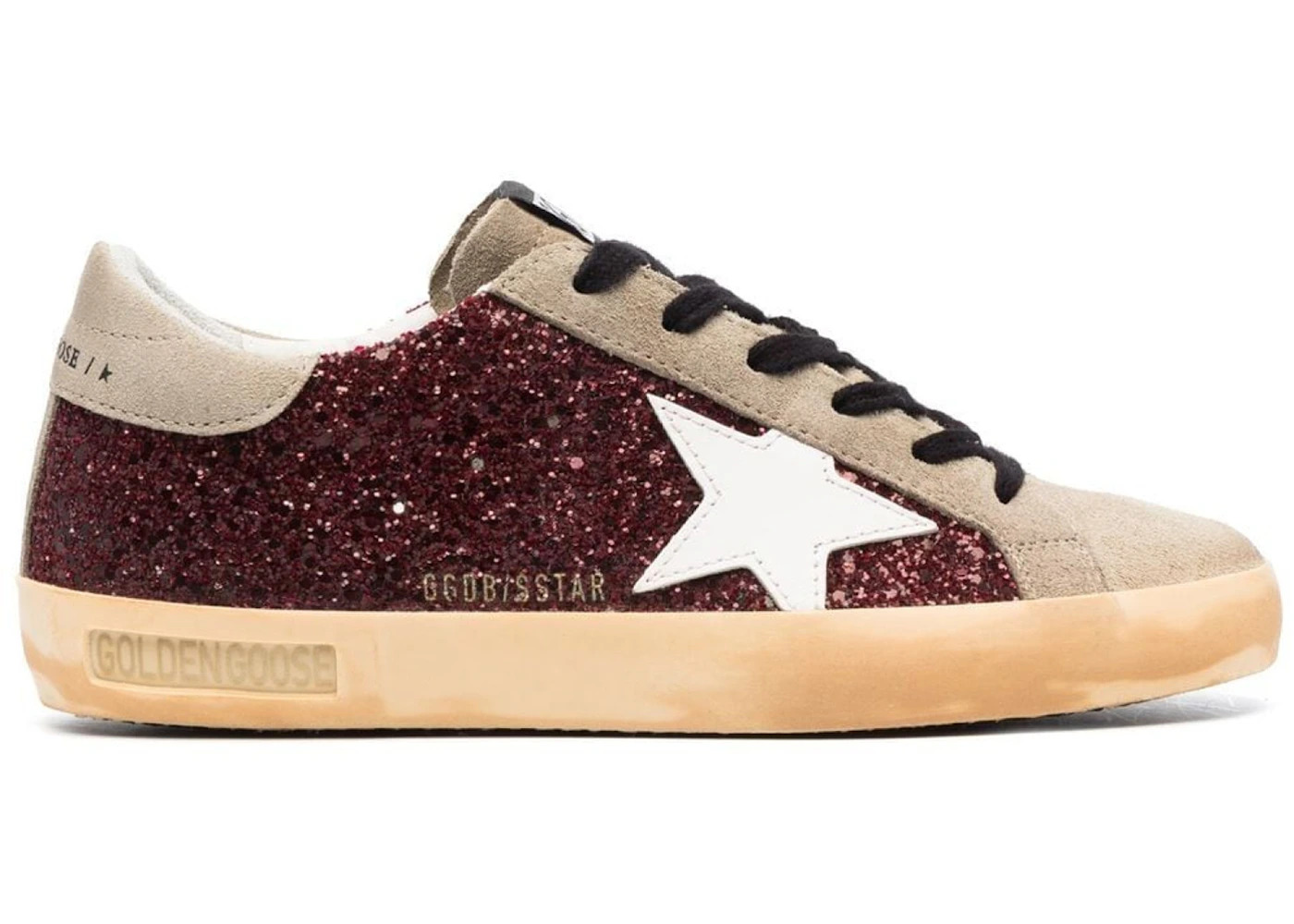 Golden Goose Super-Star Glitter Bordeaux Taupe White (Women's)