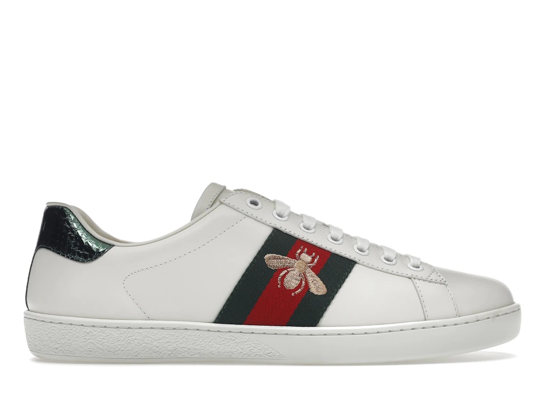 The Gucci Ace Bee is a stylish and versatile sneaker that is perfect for any occasion. Made from high-quality leather, these sneakers feature a classic white base with a black heel tab and signature Gucci stripes in green and red. The standout feature of the Gucci Ace Bee is the embroidered bee motif on the side, which adds a touch of whimsy and personality to the design. Released on May 1st, 2019, the Gucci Ace Bee quickly became a fan favorite among sneaker enthusiasts and fashionistas alike. With a retail price of $650, these sneakers are a worthwhile investment for anyone looking to elevate their footwear game. What our experts love about the Gucci Ace Bee is the attention to detail and craftsmanship that goes into each pair. From the luxurious leather to the intricate embroidery, every aspect of these sneakers is carefully considered and executed to perfection. Whether you're dressing up for a night out or keeping it casual on the weekend, the Gucci Ace Bee is a must-have addition to any wardrobe. - Style 429446 02JP0 9064 - Colorway White - Retail Price 650 - Release Date 2019-05-01 - Featured false