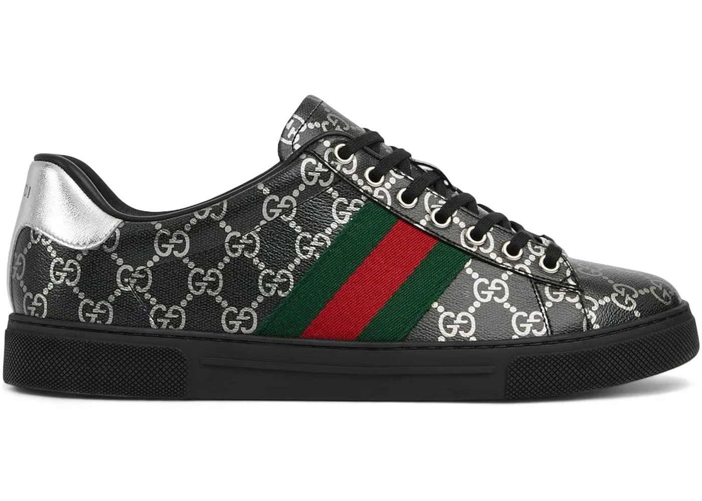 Gucci Ace Black GG Monogram Silver GG Motif