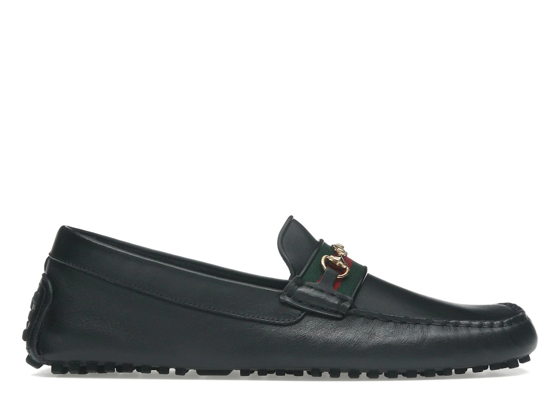 Gucci Ayrton Webbing-Trimmed Horsebit Leather Driver Loafers Black