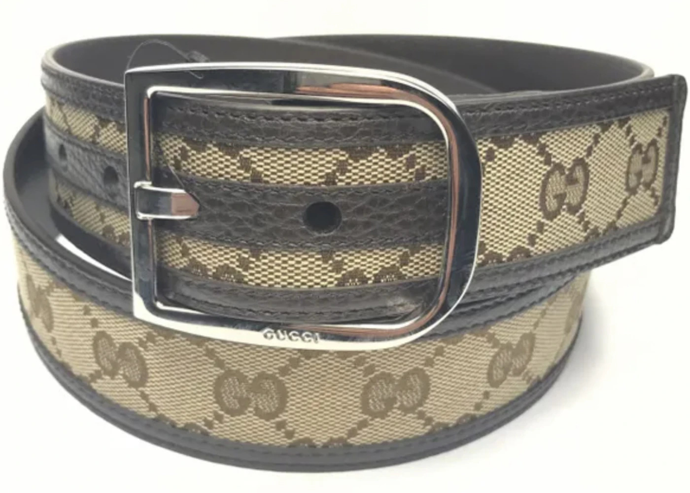 Please Note: Dust bag and box are not required for this accessory. - Dimensions 1.5W - Material Canvas/Leather - Color Beige/Ebony - Hardware Silver-tone - Style 449716 - Base Model Belt - Color Generic Brown - Exterior Variant Leather - Featured false - Interior Color Brown Leather Interior Lining - Pattern GG Supreme - Styles Belt - Width 1.5