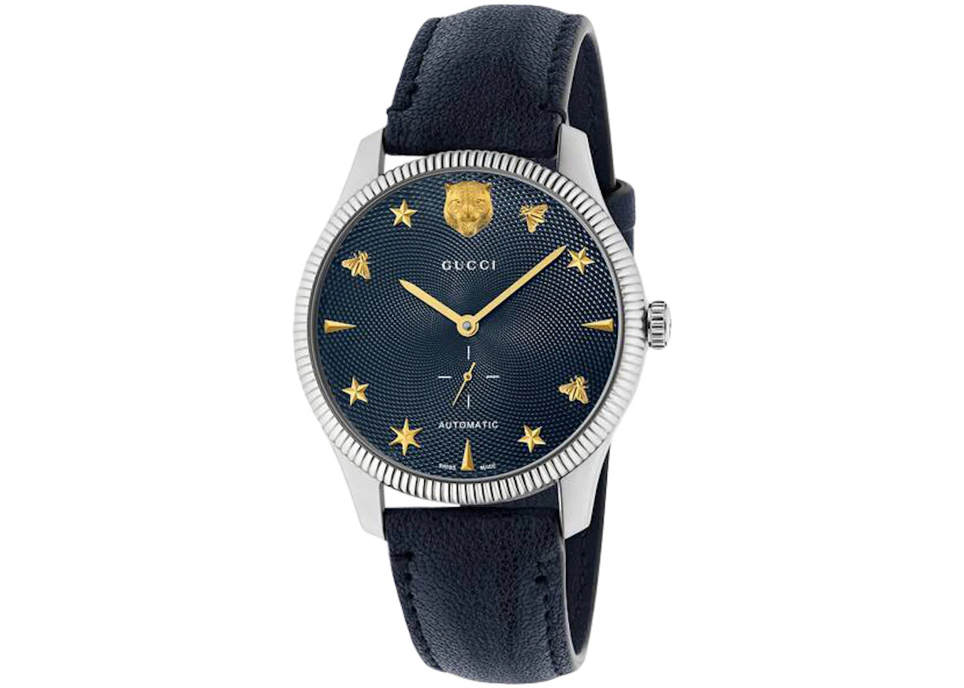 - Reference Number 559773 I18G0 8605 - Case Size 40mm - Case Material Stainless Steel - Band Leather - Movement Automatic - Dial Blue - Retail Price 1850 - Base Model G-Timeless - Featured false - Styles Dress