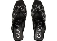 Gucci GG Crystal 75mm Heeled Sandal Black Mesh