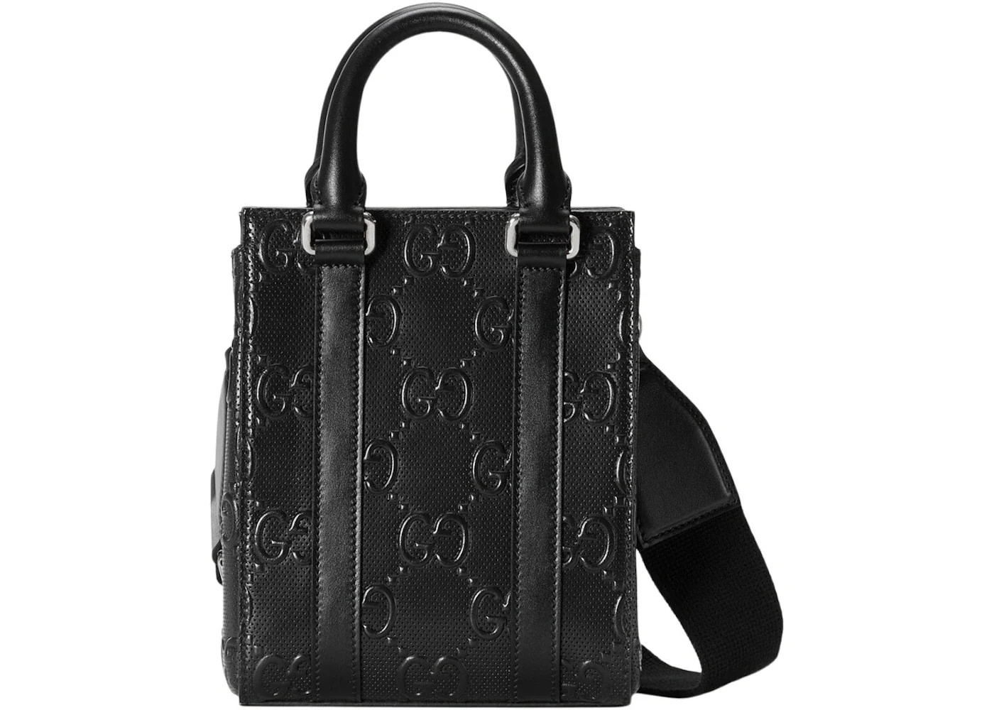 Please Note: This item comes with a dust bag, the box is not required. - Dimensions 7.9H 6.3W 2.7D Strap 21.6 Handle 2.9 - Material Leather - Retail Price 1790 - Color Black - Hardware Silver-tone - Style 696010 1W3CN 1000 - Base Model Tote Bag - Base Model Variety GG Embossed - Color Generic Black - Depth 2.7 - Featured false - Handle Drop 2.9 - Height 7.9 - Strap Drop 21.6 - Styles Tote - Width 6.3