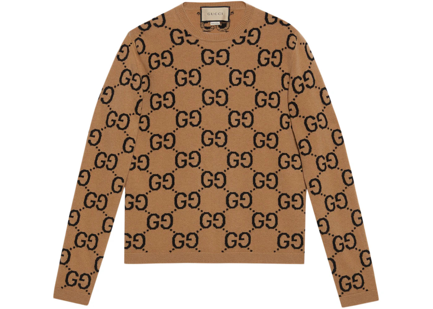 Gucci GG Wool Jacquard Crewneck Jumper Camel/Black