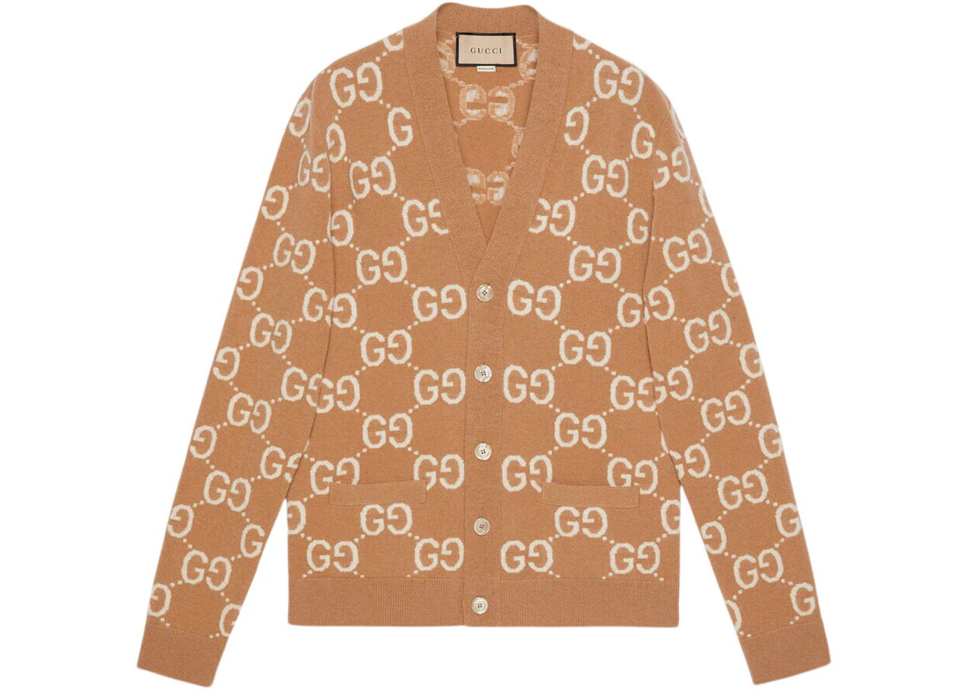 Gucci GG Wool Jacquard V-Neck Cardigan Camen/Ivory