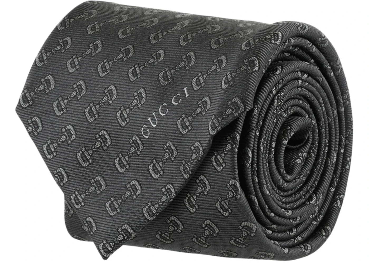 Gucci Horsebit Silk Jacquard Tie Black Dark Grey