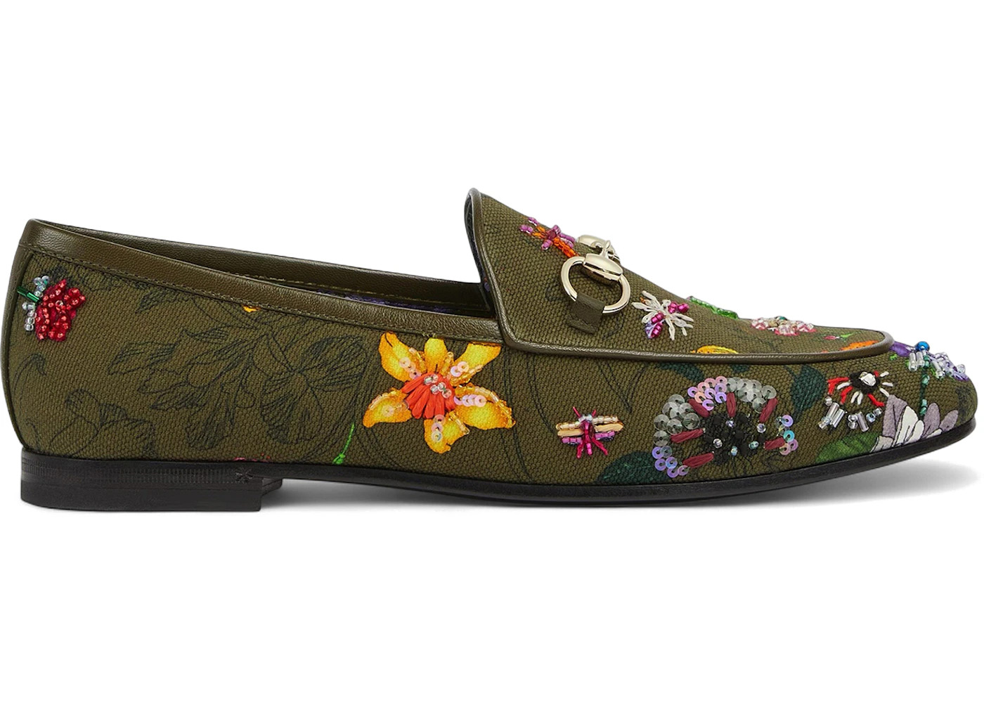 Gucci Jordaan Canvas Loafers Green Floral (Women's)