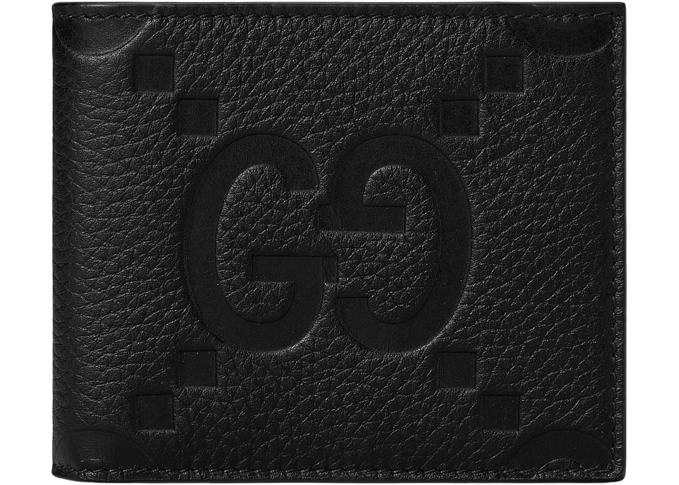 This Gucci Jumbo GG Wallet Black was made in Italy. It is an eight-slot wallet with plenty of room for identification, credit cards, and cash. All black with a sleek design, this wallet is both stylish and practical. It measures 4.3"W x 3.5"H when it is closed and 8.3"W x 3.5"H when it is opened. When compared to other men's wallets, it is standard size. It is made of high-quality leather with a grained texture for added elegance. The interior is carefully lined with moire, a delicate but highly durable fabric. Along with its credit card slots, there are a couple of compartments for holding paper money. We are most impressed with the artistic Gucci logo prominently displayed in the center of the Gucci Jumbo GG Wallet Black. This jumbo-size logo gives this bi-fold wallet a more luxurious look and feel. It is part of the Gucci Fall/Winter 2023 collection. Its original retail price was $580. - Dimensions 3.5H 4.3W - Material Jumbo GG Leather - Retail Price 580 - Color Black - Style 739475 AABY0 1000 - Season FW23 - Base Model Wallet - Base Model Variety Jumbo GG - Color Generic Black - Featured false - Height 3.5 - Styles Wallet - Uploaded By ML - Width 4.3