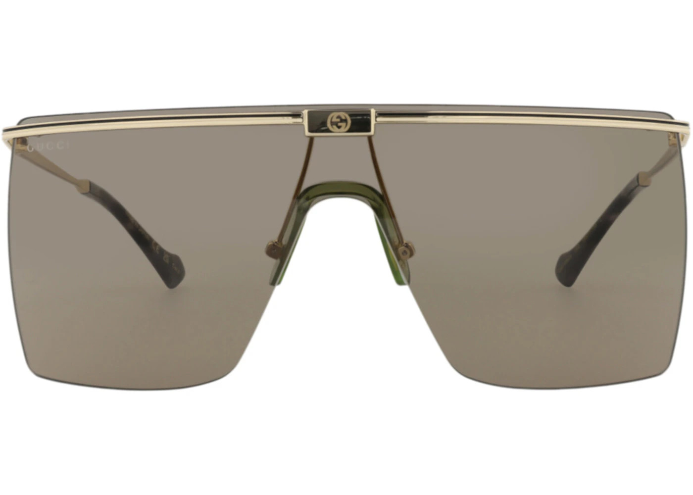 Gucci Shield-Frame Metal Sunglasses Gold Gold Brown (GG1096S-30013075-002)