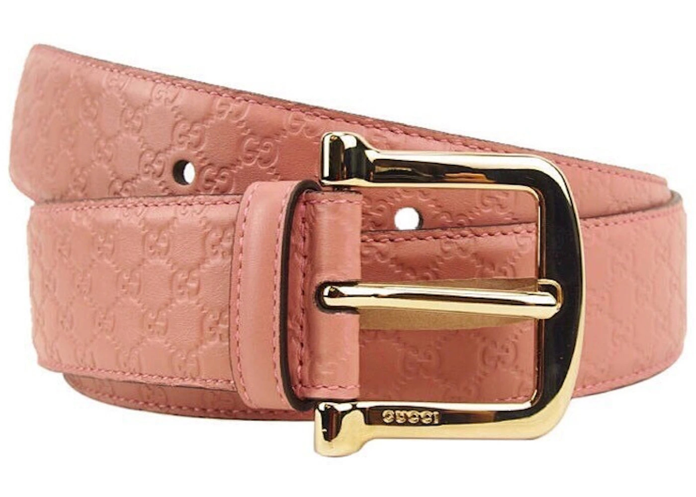 Please Note: Dust bag and box are not required for this accessory. - Dimensions 1.5W - Material Leather - Color Pink - Hardware Gold-tone - Base Model Belt - Base Model Variety Signature - Color Generic pink - Featured false - Pattern Guccissima - Pattern Variant Embossed - Styles Belt - Width 1.5